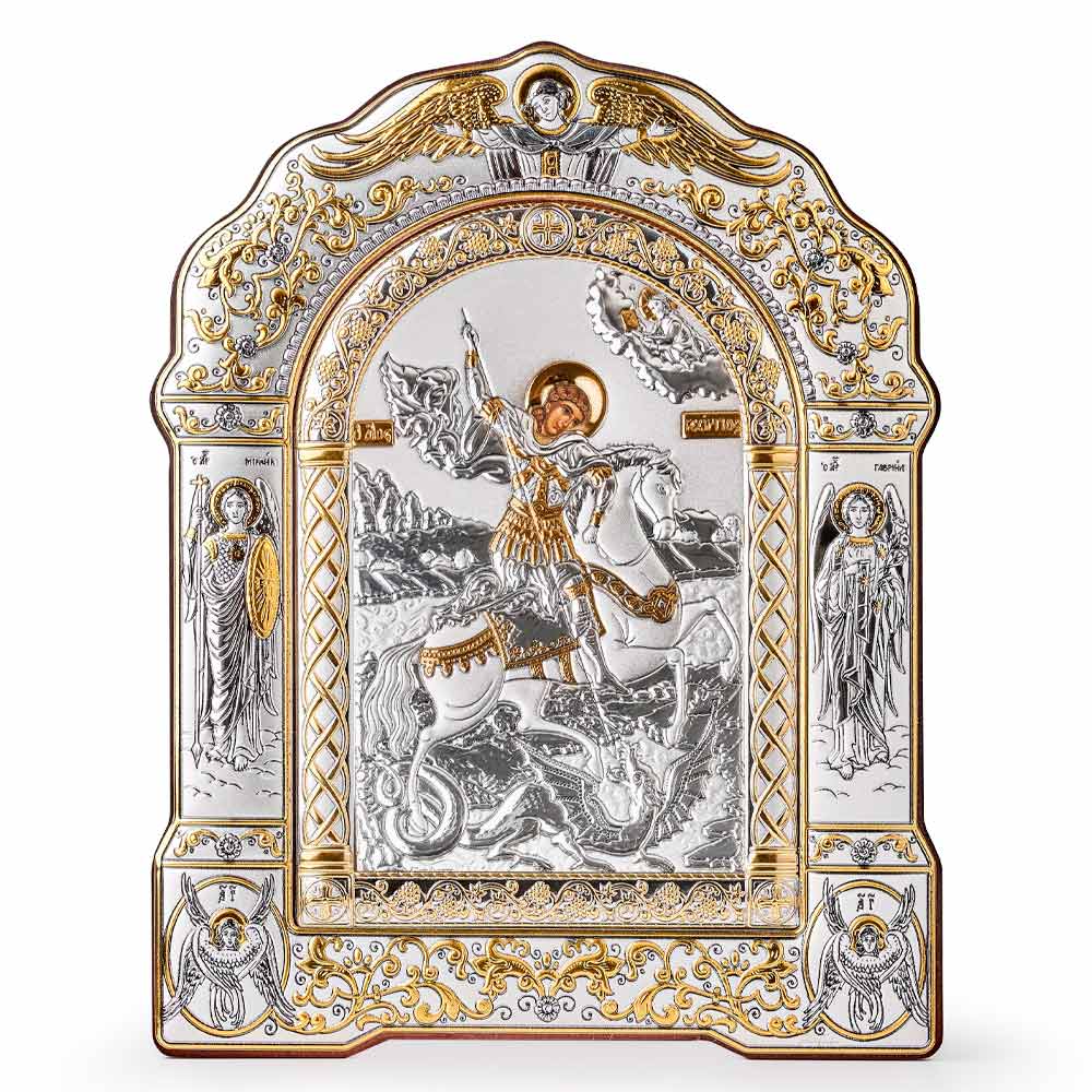 Иконы воспроизведены с типичными цветами иконографии,с помощью лучшей технологии покрытия серебром 925 пробы.