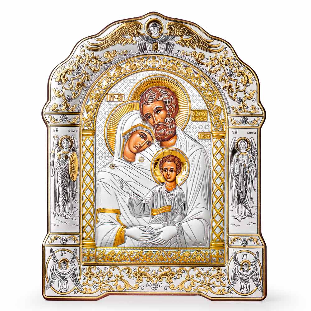 Иконы воспроизведены с типичными цветами иконографии,с помощью лучшей технологии покрытия серебром 925 пробы.